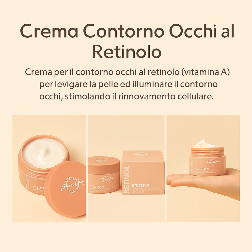 Crema contorno occhi al retinolo (vitamina A) per levigare la pelle ed illuminare il contorno occhi, stimolando il rinnovamento cellulare.